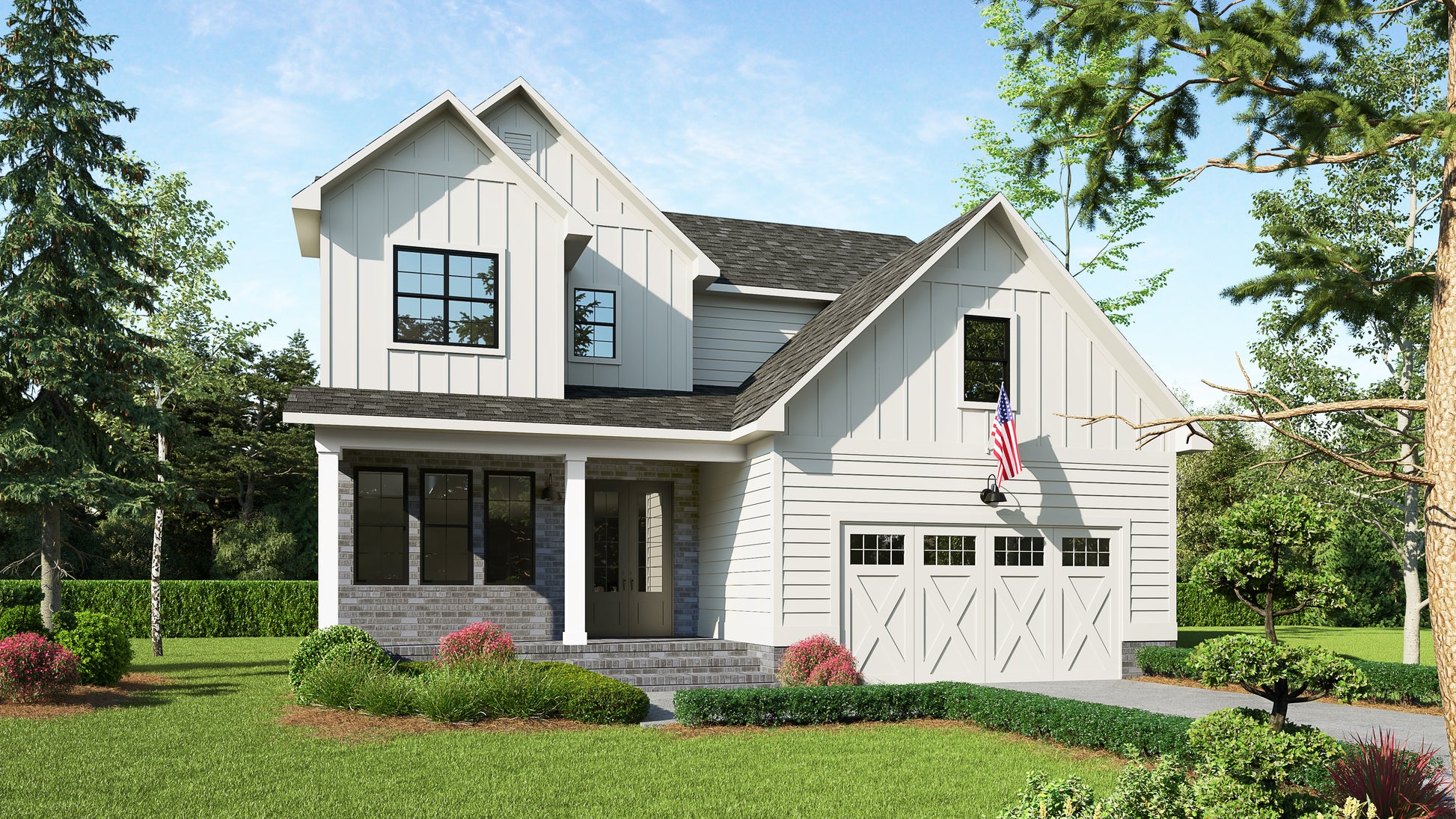 The new standard for farmhouse aesthetics – this plan delivers. Ideal for narrow lot configurations the Laurelwood boasts big areas in a focused foot print. A master suite with separate entry provides for the allusion of your own wing of the house. With secondary bedrooms only on the third floor, space and privacy are both respected. A towering stairwell lined with windows strikes a dramatic entry as you welcome your guests into your home. With flexible space in the great room/ dining multiple seating arrangements are possible to fit your exact needs. A fresh exterior blends multiple materials to create a timeless look.